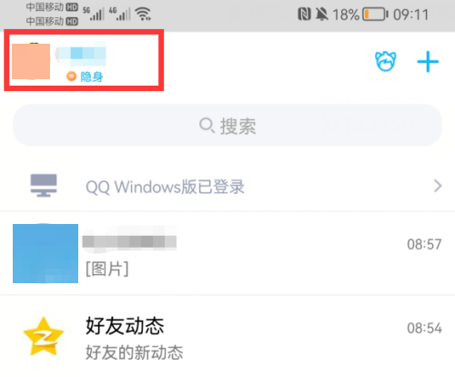 第三步:返回首页,手机qq隐身设置成功。