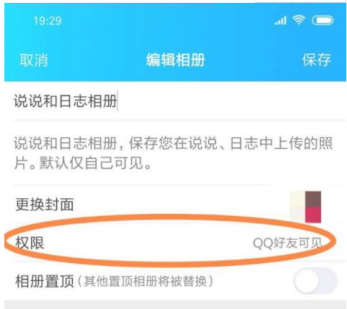 第六步:点击“权限”,选择“QQ好友可见”。