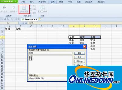 接下来框选出数据的首行,在“公式”选项卡中选择“名称管理器”按钮,输入名称“类别”, 然后点击“确定”。那么选择首行作为“类别”组就完成了。如图2所示