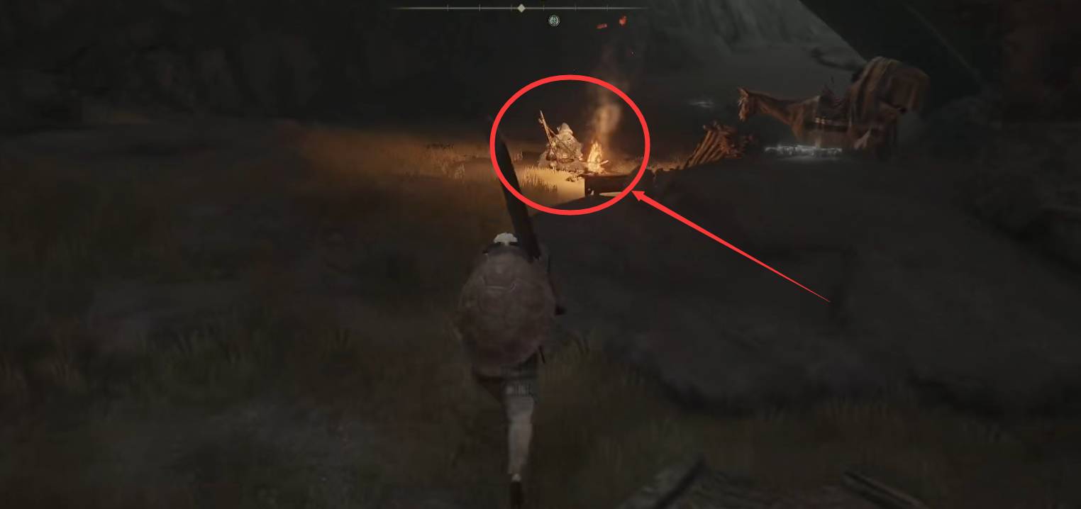 首先,移动到地图箭头所指红圈处位置(海滩建筑物残骸下面有很大空间)。