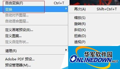 然后先进行最简单的自由变换,在编辑菜单的下拉列表中选择自由变换,或直接Ctrl+T