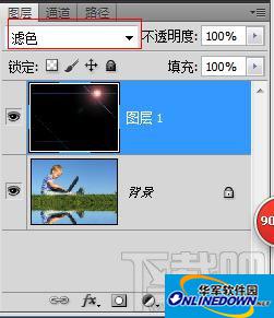 然后选中新建图层1,在图层混合选项中选中“滤色”模式即可完成。