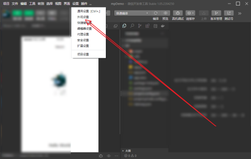 第一步:打开微信开发者工具后,点击【设置】(如图所示)。