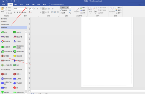 第六步:接下来我们就可以利用左边栏的“形状图”以及工具栏中的工具进行绘制营销图表了。