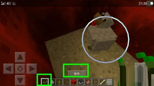 第三步:跳回我的世界,轻点我的世界,鸡就养出来了,点击种子喂养鸡仔。