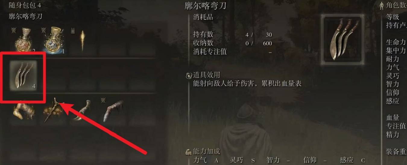 4.最后,在随身包包栏成功装备上需要用的武器。