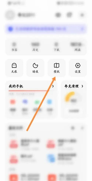 第一步:打开夸克浏览器,在我的界面中进入壁纸(如图所示)。
