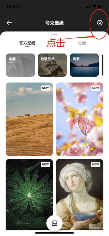 第五步:进入壁纸页面后,点击右上角的设置按钮(如图所示)。
