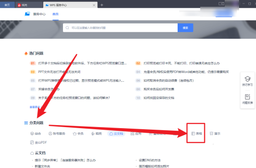 第二步:在服务中心选择【分类问题】并点击查看【表格】(如图所示)。