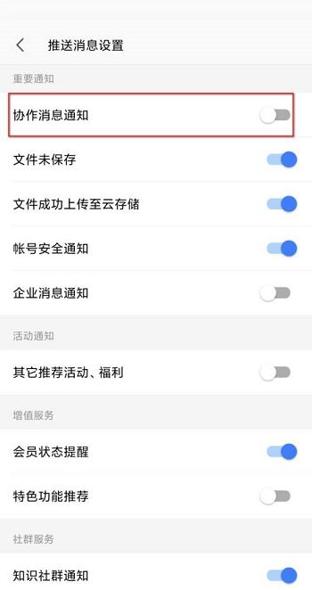 以上就是小编给大家带来的WPS office怎么关闭协作消息通知的全部内容,希望能够帮助到大家哦。