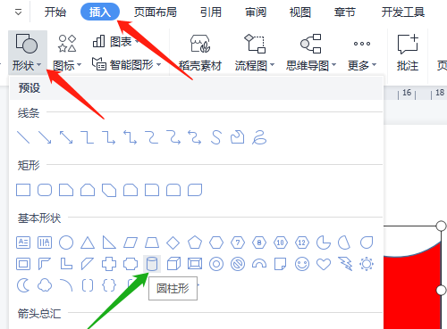 第四步:插入菜单,形状,圆柱形。