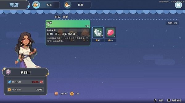 阿蜜拉的商店出售矿石和粘土材料。
