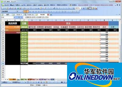 时尚的又非常受欢迎的记账模板。每个月的支出类别设定多大12种,对一些开销比较琐碎的用户,特别是MM来说,应该是相当理想的模板,每一项指出都不错过,让你花钱花得心里也有数(图3)。