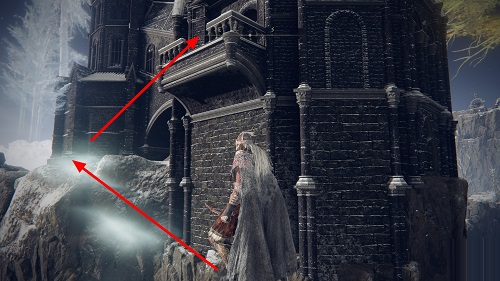 在靠近魔法师塔后通过左侧的隐藏楼梯向上进入魔法师塔。