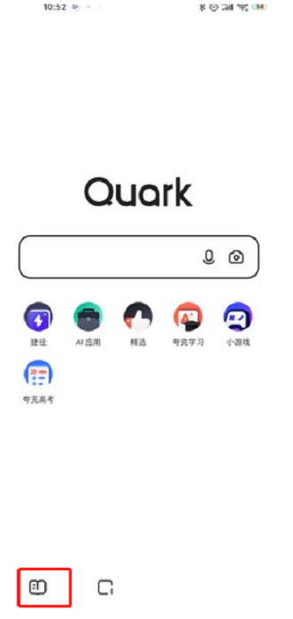 第一步:打开夸克浏览器,点击左下方的书籍按键。