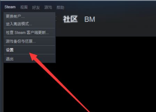第三步:选择打开steam的设置,如图所示: