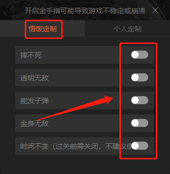 在金手指选项界面,有悟饭游戏厅系统定制好的一些金手指,选择对应的一项,活动选择键就完成了。