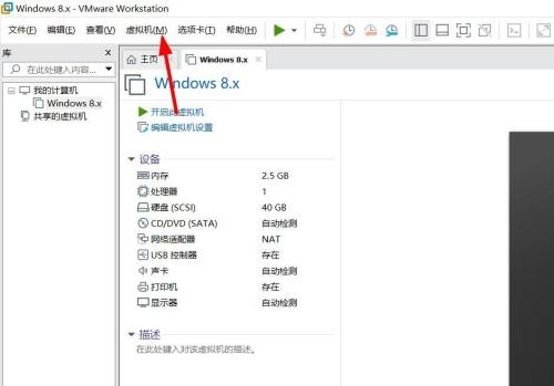 第三步:点击上方菜单栏的虚拟机选项。