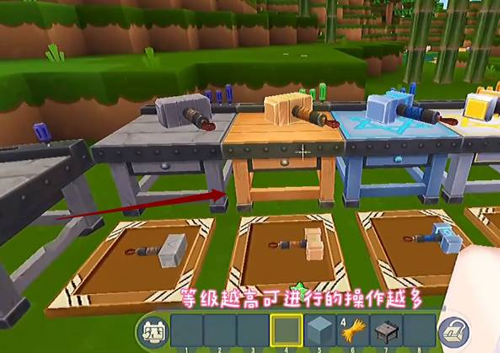 2、创造锤分等级由高到低、依次是石 铜 铁 钛 我们可以根据需要来制作。