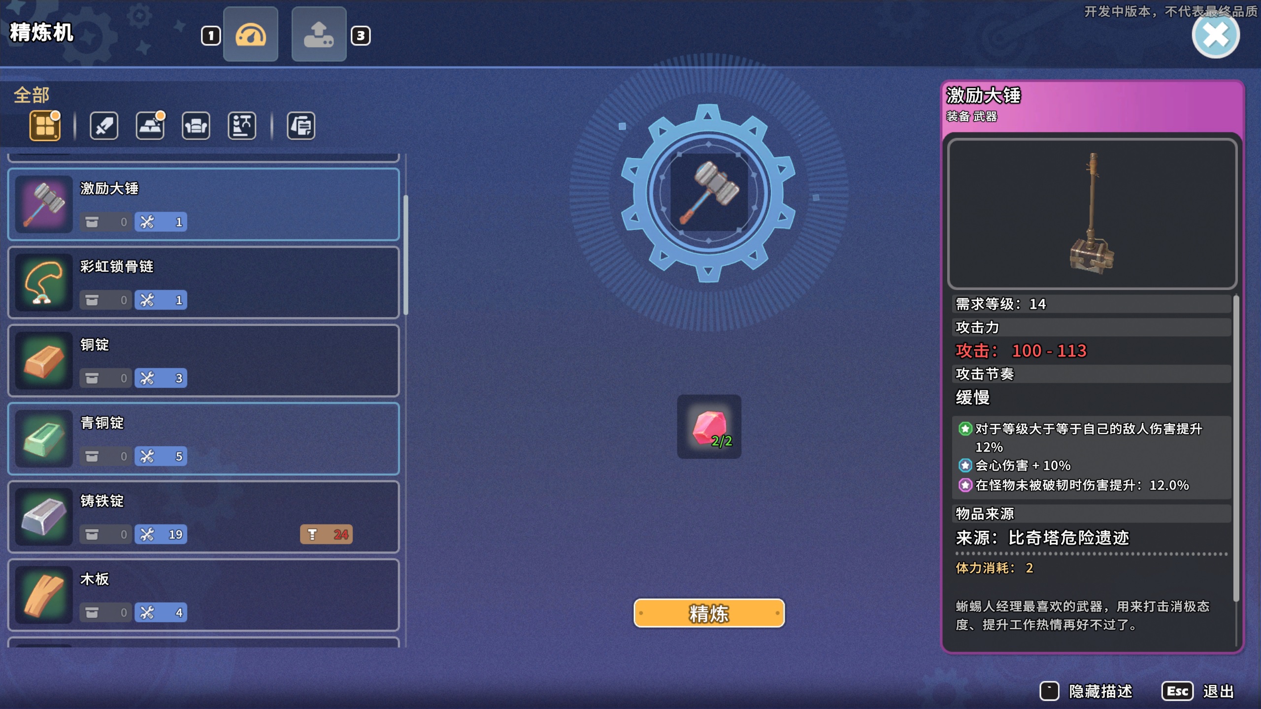 使用精炼机就可以制作高品质的物品了,把普通品质物品放进去精炼