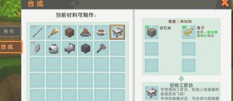 2、打开背包合成界面,消耗绳子和岩石块,制作空的工匠台。