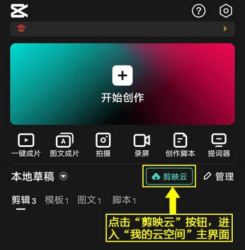 第二步:点击“剪映云”按钮,进入“我的云空间”主界面。