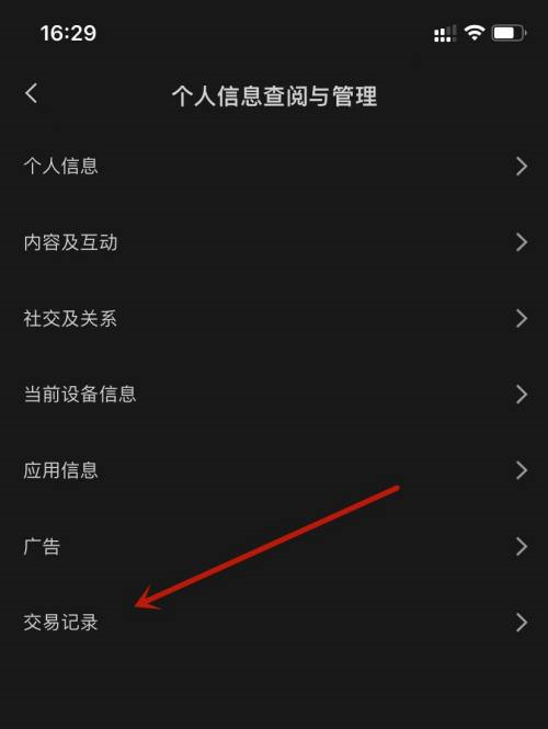 第二步:在个人信息查询与管理中,点击交易记录。