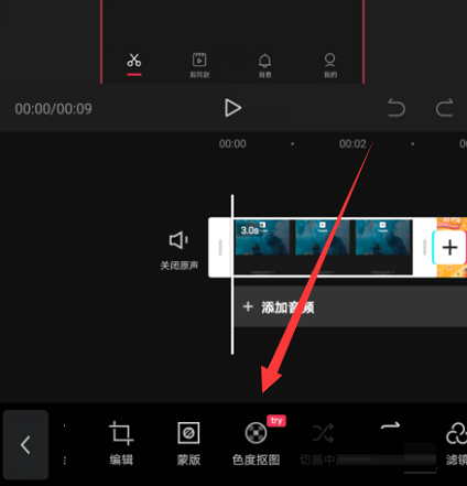 第三步:进入剪辑状态,滑动底部选项栏找到色度抠图。