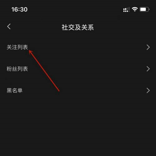 第三步:在社交及关系中,点击关注列表即可。