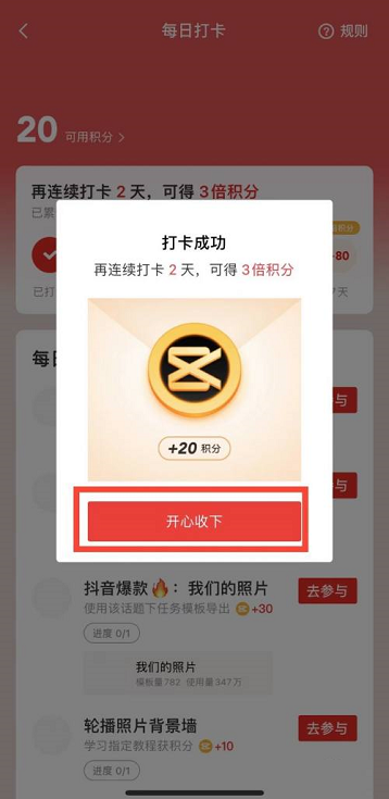 以上就是小编给大家带来的剪映如何获得积分的全部内容,希望能够帮助到大家哦。