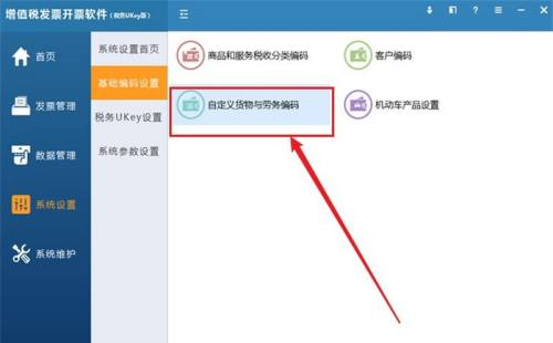第二步:进入系统设置模块,选择基础编码设置,点击自定义货物与劳务编码。