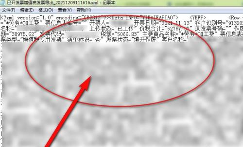 第六步:在导出目录找到导出的XML格式文件,用记事本打开即可查看到发票数据。