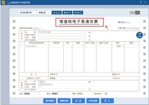 第二步:进入增值税电子普通发票填开界面。