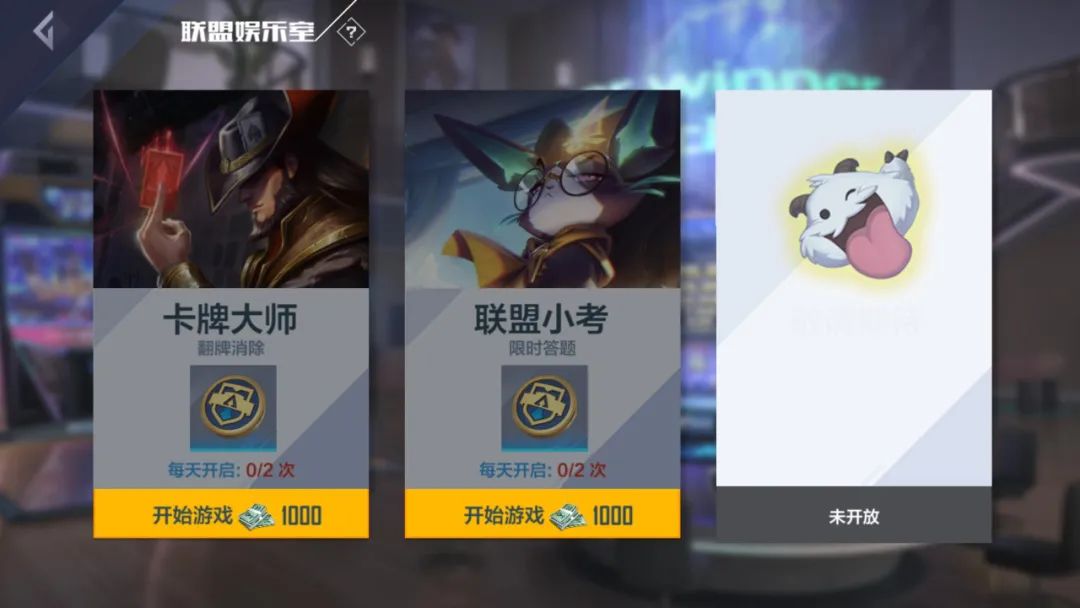 另外就是在联盟娱乐室玩翻牌游戏和联盟的考试游戏,翻盘游戏的400是肯定可以拿满的,联盟的考试的话如果你非要想拿满的话是可以答到最后然后直接闪退再回来,一定是和上一次的题一样,但是这样比较累,就一天拿300就够了。