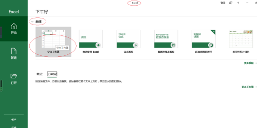 第一步:首先打开Microsoft Excel 2016,点击"新建|空白工作簿"图标(如图所示)。