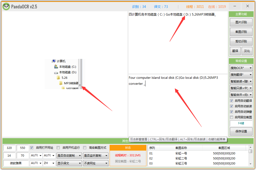 第三步:之后在软件中就可以看到我们截取的图片,右侧上面的设别出来的文字,下方是翻译出来的英文。