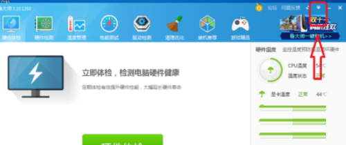 第二步:进入到鲁大师主页后点击右上角的三角形图标(如图所示)。