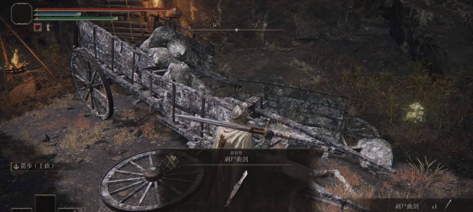 4.最后拾取马车边上的光柱即可得到剥尸曲剑。