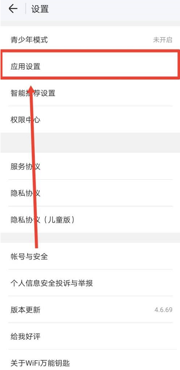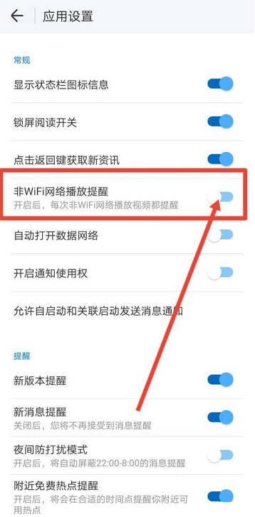 第五步:来到应用设置点击【非WIFI网络播放提醒】的按钮开启即可。