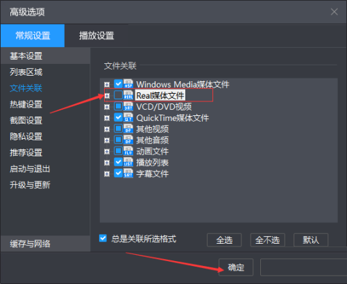 第六步:勾选上【real媒体文件】选项之后,点击【确定】即可(如图所示)。