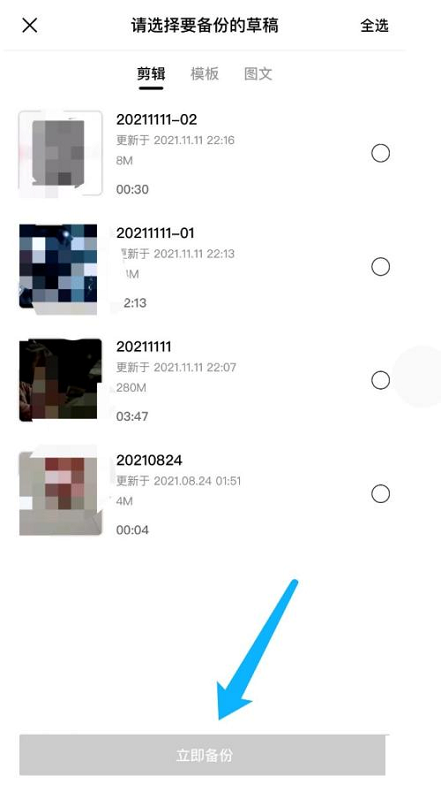 第五步:勾选需备份的草稿,点击立即备份。