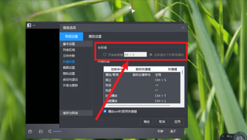 第三步:在热键设置选项中设置暴风影音的老板键即可设置。