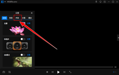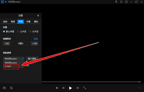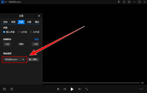 第三步:在声音选项卡中,点击“单轨选择”下方的下拉选择框。
