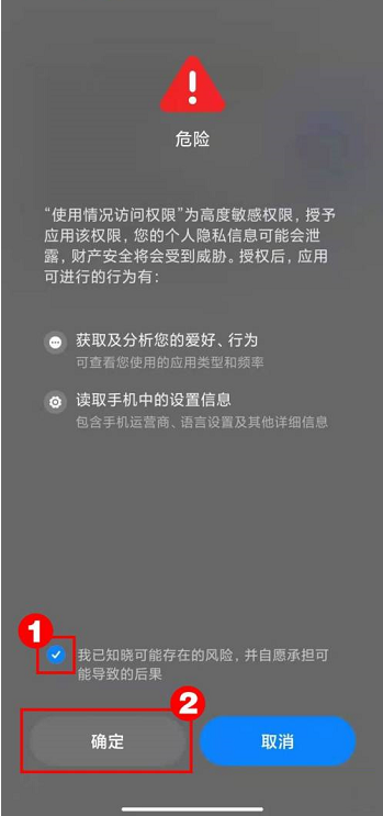 第五步:允许查看使用情况开启,代表省电模式完成(如图所示)。