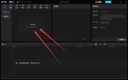 第一步:打开剪映专业版,点击【导入素材】。