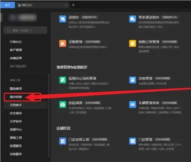2.然后在团队办公菜单栏列表中点击选择【输出转换】