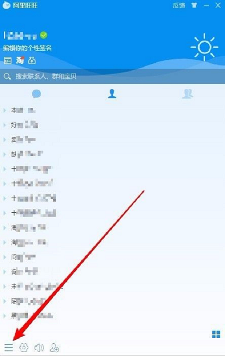 第一步:打开阿里旺旺软件,进入主界面,点击左下角的“主菜单”按钮。
