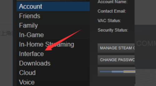 3、然后再setting中选择左边的工具栏interface选项。