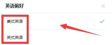 第六步:在弹出窗口中,选择使用的英语偏好类型,如:点击“美式英语”即可(如图所示)。