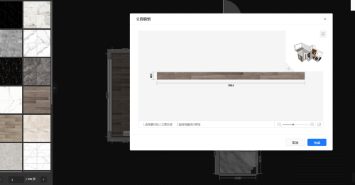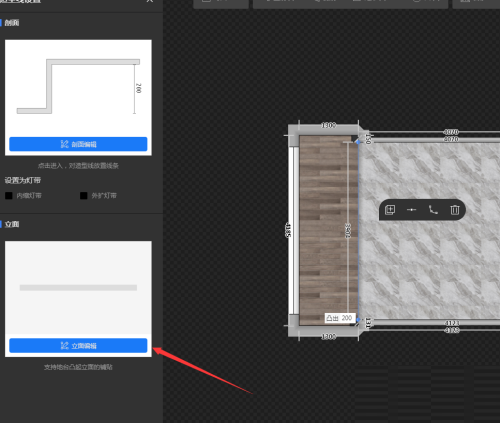 第五步:点击绘制区域的侧边线条,进入“立面编辑”,填充相同材质后点击确定即可。